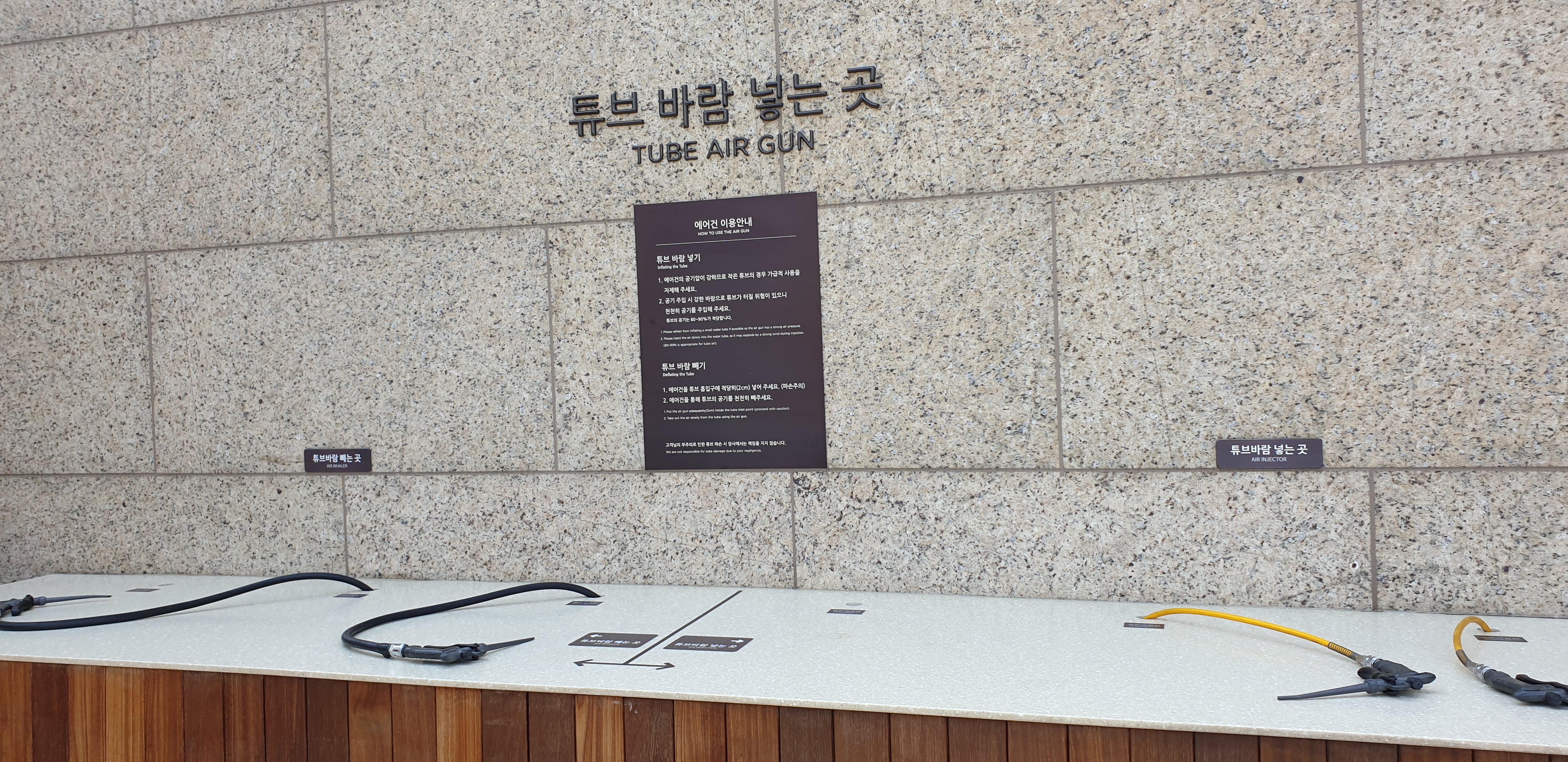 - 튜브 바람 넣고 빼는 기계는 3개씩 존재하나 방문 했을 당시 2개씩만 운영하고 있었다.