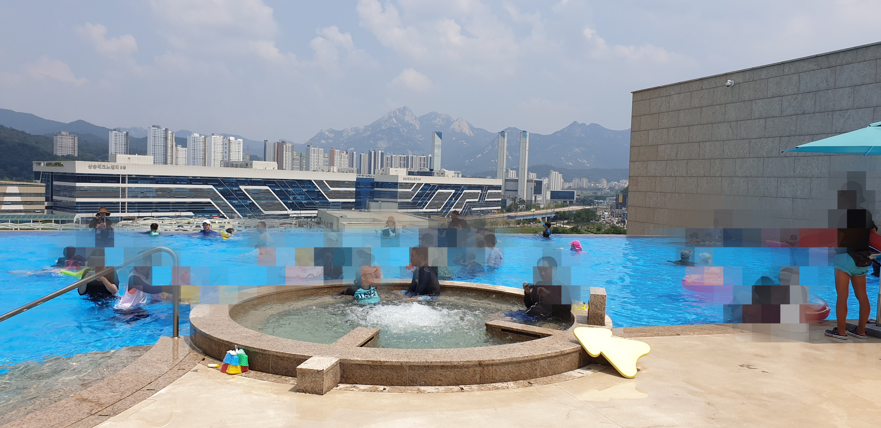 하지만, 아쿠아필드 루프탑의 수온이 날이 무더위여서 그런지 따뜻한 물을 받아놨는지