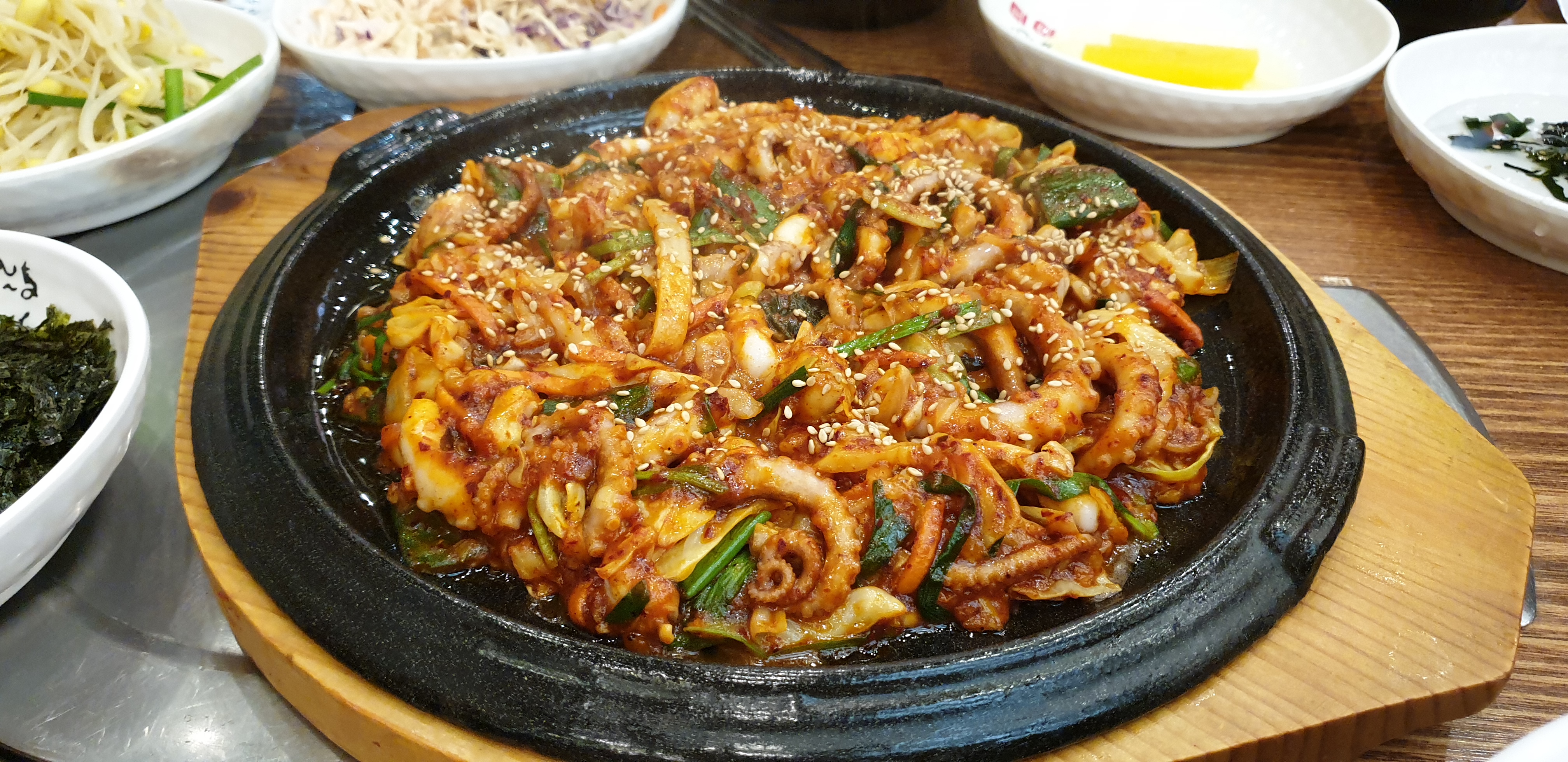 어른 셋이서 낙지볶음과 해물파전을 먹었어요~