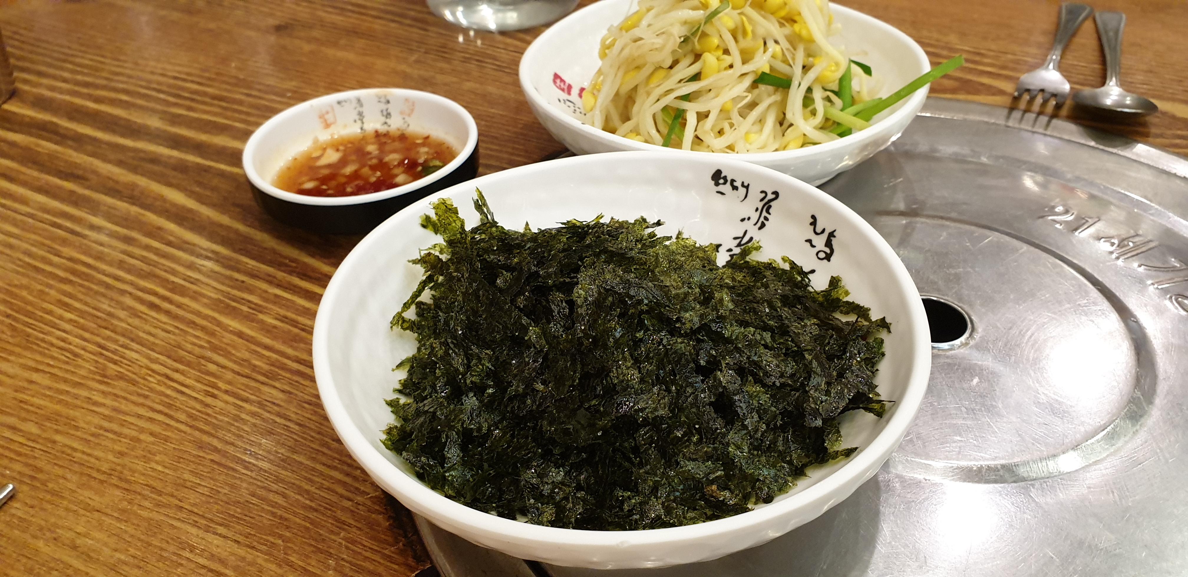 미역냉국 + 콩나물 + 단무지 + 김가루