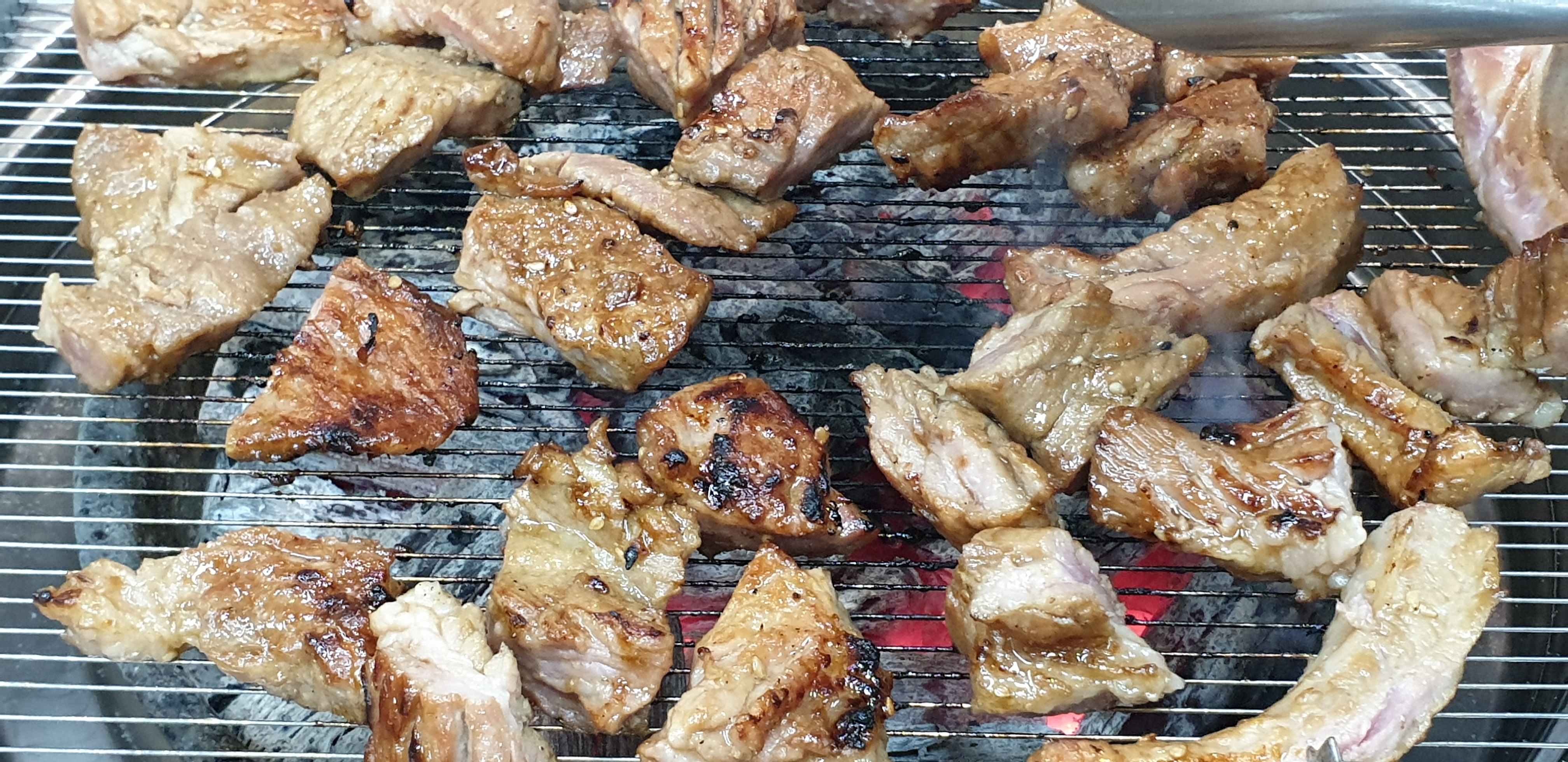 고기를 열심히 굽는다고 구웠는데 양념이 타버리기 때문에