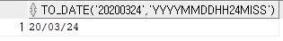 , TO_CHAR(TO_DATE('20200324', 'YYYYMMDDHH24MISS'), 'YYYY/MM/DD HH24:MI:SS') AS TO_DATE_형식2