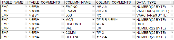 COLUMN 과 COMMENT 를 복사해서 엑셀 문서에 붙여넣기를 하곤 하는데